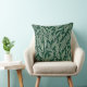 Dieses Kissen hat ein modernes und raffiniertes Design mit einem natürlichen Blattmuster, das auf grünem Hintergrund in Weiß gezeichnet wird.