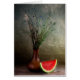 Stillleben mit Melon und verwelkten Pappi in Vase