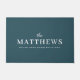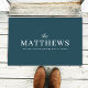 Eine stilvolle, moderne Foto-Ferientür-Matte mit Ihrem Nachnamen in klassischer Typografie gepaart mit einem handgeschriebenen Schriftart in Weiß und einer wunderschönen, aquamarinen, grünen Farbe auf der Rückseite. Ein lustiges, minimales Design, um sich von der Menge in dieser Weihnachtszeit abzuheben!