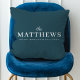 Ein stilvolles, modernes Foto-Urlaubskissen mit Ihrem Nachnamen in klassischer Typografie gepaart mit einem handgeschriebenen Schriftart in Weiß und einer wunderschönen, aquamarinen, grünen Farbe auf der Rückseite. Ein lustiges, minimales Design, um sich von der Menge in dieser Weihnachtszeit abzuheben!