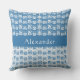 Das stilvolle Outdoor-Kissen mit griechisch-Wirbel wiederholtem Blumenmuster in Blau und Weiß, das Muster in umgekehrter Weiß mit Blau. Personalisieren Sie Ihre Daten mit dem Namen oder einer anderen speziellen Nachricht. Innengewebt und weitere Größen erhältlich.