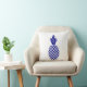 Dieses stilvolle Kissen kennzeichnet eine Marineblauananas auf einem klaren weißen Hintergrund. Die Rückseite des Kissens ist feste Marine.