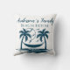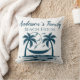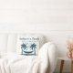 Ein stilvolles und liebevoll eingerichtetes Strandhaus mit Kissen / Kissen für Sie Zuhause. Das Design besteht aus 2 blauen Palmen und einer Hängematte, Meer und Vögeln. Eine wunderschöne personalisierte Wohngestaltung für Ihre Hütte oder Ihr Gästehaus mit Küstenthemen. Alle Texte können individuell angepasst werden und dann mit Familienname und Datum personalisiert werden.