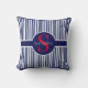 Stilvolles marineblau-rot gestreiftes Anfangsmonog Kissen