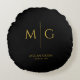 Fügen Sie Ihrem Zuhause einen anspruchsvollen Akzent hinzu mit diesem schwarzen runden Kissen, das mit einem stilvollen Monogramm und Namen personalisiert wurde. Sein elegantes Design verschönert Sofas, Sessel oder Betten und behält dabei ein sauberes, modernes Aussehen. Das Kissen ist aus weichem Stoff gefertigt und mit hochwertigem Druck versehen, was langanhaltenden Komfort und visuelle Attraktivität bietet. Ein ideales personalisiertes Geschenk für Liebhaber von Wohnaccessoires.
