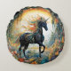 Bezaubertes Waldunicorn Rundkissen, eine köstliche und skurrile Ergänzung zu jedem kleinen Mädchenzimmer. Dieses dekorative runde Kissen besticht durch ein faszinierendes schwarzes Einhorn mit einem strahlenden, regenbogenfarbenen Mane, Set in einem zauberhaften und bezaubernden Wald. Tauchen Sie ein in eine Welt der Fantasie und des Wunders mit diesem bezaubernden Design. Das schwarze Einhorn, das mit einem lebendigen, regenbogenfarbenen Mane geschmückt ist, hebt sich von dem weichen, üppigen Kissengewebe ab. Es dient als wunderschöner Mittelpunkt und bringt eine Touch von Zauber und Charme in den Raum.