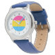 Kinderuhr aus Edelstahl mit blauem Lederarmband