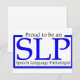 "Proud to be a SLP, Speech Language Pathologe". Dieses Design findet sich auf T - Shirt, Hüten, Tasse, Magneten und vieles mehr!