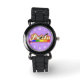 Uhr, Kinderuhr aus Edelstahluhr mit lila Lederarmband