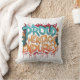 Ein lebendiges und auffälliges Kissen mit der Phrase "Proud Heritage Enprocedures" in mehrfarbigen Blockbriefen, in einem runden Muster angeordnet, wodurch ein optisch ansprechendes und unvergessliches Design entsteht.