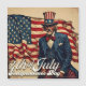 Eine verwitterte, aber stolze Figur steht vor einer zerrissenen US-Flagge - seine Anwesenheit ist ein Tribut an den anhaltenden Geist der Freiheit, der Widerstandskraft und des amerikanischen Traums. Dieses Bild erfasst das Wesen des Unabhängigkeitstages mit poetischer Würde und patriotischer Stärke.