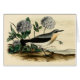 Vintage Malerei von einem amerikanischen Stonechat oder von Zaunkönig. Niedlicher kleiner graulicher Vogel in einem Südwesthintergrund mit staubigen lila Hydrangeas. Illustriert in der viktorianischen Ära, 1862 durch Künstler und Amerikaner Ornithologist John Cassin.