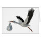 Klassische Beschreibung eines Storchs im Flug, der ein neugeborenes Baby auf weißem Hintergrund liefert. Addieren Sie Ihren eigenen Slogan. Groß für Mitteilungen, Einladungen, Mitteilungskarten, Glückwünsche und danken-Sie Karten.