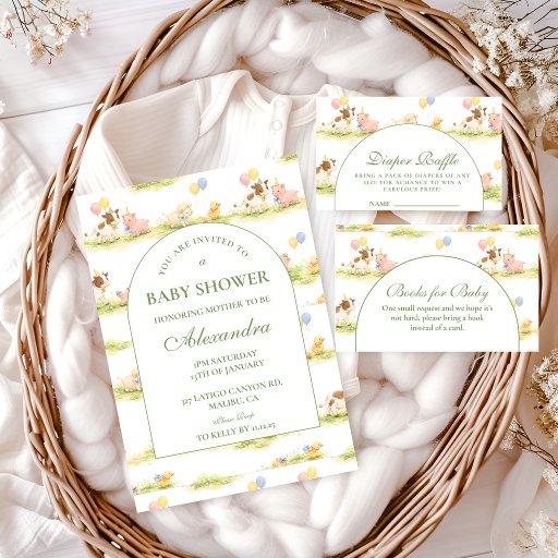 Storybook Farm Animals Pastel Diapper Raffle Begleitkarte