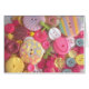 Eine wunderbare Collage der Knöpfe in den Sommerstrandfarben von Gelbem, von rosa, Rose, Grün und Orange. Ein großer Entwurf für jedermann, das Knöpfe oder gerade Liebeknöpfe sammelt.