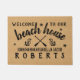 " Willkommen zu unserem Strandhaus" Text mit Kanupaddeln, Ankern, Starfish und Ihrem Familiennamen - Imitatleinwandhintergrund mit schwarzem Text
