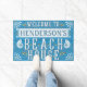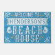 Diese schöne personalisierte willkommene Matte des Strandhauses grüßt Ihre Gäste mit einer ein-von-ein-netten kundenspezifischen Touch. Der einzigartige Küstenentwurf wird gemacht, um blauem hölzernem Korn mit weißem Text und elegantem Schnörkel in den Schatten des braunen und goldenen Gelbs zu ähneln. Nautilus-Muscheln umgeben den "Strand-Haus" Text, der gemacht wird, um etwas getragen zu schauen.