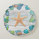 Strand hütet Glas, Muscheln, Treibholz Rundes Kissen