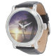 Uhr, Vintage Männeruhr mit schwarzem Lederarmband