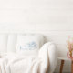 Niedliches Kissen für Strandausstattungen in einem umkehrbaren Design - auf der Vorderseite ist Meerjungfrau zu sehen und in einem handgeschriebenen Schriftart "Strandhaar, kümmern Sie sich nicht" zu lesen. Die Rückseite dieses Strandkissens ist ein Aquarellblau Sand Dollar Muster Design.