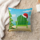 Strandstuhl Weihnachtskissen mit Weihnachtsmannmütze auf Sandy-Strand-Hintergrund mit Weihnachtsbaum