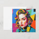 "Strasha" - Glanz Pop Collage Dream. Dieses Portrait ist eine moderne digitale Hommage an Retro-Glam und kanalisiert Pop-Kunstbrillanz durch laute Farben, scharfe Linien und einen rebellischen Blick. Mit einer Kollage-Kulisse und Mini-Figuren als Accessoires unterbricht das Stück Konventionen und feiert dabei Individualität und kühne Weiblichkeit. Es ist elektrisch, redaktionell und unbeschämt lebendig.