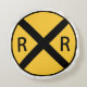 Ein klassisches gelbes Schild mit einem Eisenbahnschild.