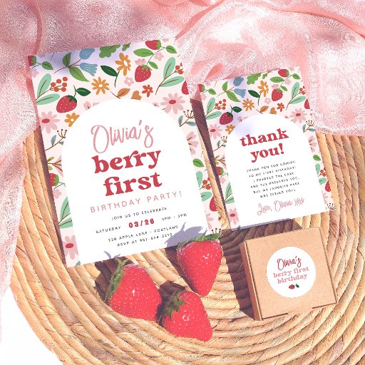 Strawberry Berry First Foto Geburtstagsparty Einladung