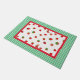 Dieser helle und farbenfrohe Küchenteppich weist einen grün-weißen Gingham-Karo auf, der mit einem Erdbeermuster in der Mitte kariert ist. Ein rotes Band aus Imitaten grenzt an das Erdbeermuster. In unserem Shop gibt es auch einen Kochtopf, einen Topfhalter, Küchentücher und eine Schürze.