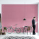 Spezialisierte Bearbeitung, verwandelte dieses Foto in ein Abstraktes, grafisches Muster, mit einem strukturierten Aussehen, aus geflochtenen Textilien, in blassrosa und weiß.