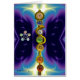 Elegantes, künstlerisches, farbenfrohes Symbol für antike griechische Astrologie, Medizin und Heilung: Asklepian, eine gefesselte goldene Schlange, glänzende Edelsteine als sieben Chackras, fünf Elemente: Feuer, Holz, Erde, Wasser, Metall in lebhaften Lichtern und Fraktal-Wellen in Rosa, lila, Violett, Aquablau, Weiß. Cooles Design für traditionelle indische, japanische und chinesische Medizin, Feng Shui, Zen, Kampfkunst. Das Wort chakra ist Sanskrit für Rad oder Scheibe und bezeichnet eines von sieben grundlegenden Energiezentren im Körper, die Nervenganglien entsprechen, die sich aus der Wirbelsäule verzweigen, sowie Staaten des Bewusstseins, entwicklungsfördernde Bühnen des Lebens, archetypische Elemente, Körperfunktionen, Farben, Töne und vieles. mehr. Zusammen bilden sie eine profunde Formel für Ganzheit und eine Vorlage für Transformation.