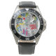 Uhr, Vintage Männeruhr mit schwarzem Lederarmband