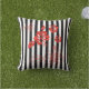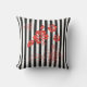Dieses Kissen im Freien wird in niedlichen schwarz-weißen Streifen und tropischen Blume in Rot gezeigt. Passen Sie dieses Objekt an oder kaufen Sie einfach, wie es ist.