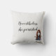 Strichfigur-Mädchen in Denim Kleid mit Zitat Kissen