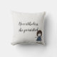 Strichfigur-Mädchen in Denim Kleid mit Zitat Kissen