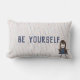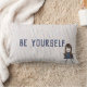 Strichfigur-Mädchen in Denim Kleid mit Zitat Lendenkissen