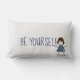 Strichfigur-Mädchen in Denim Kleid mit Zitat Lendenkissen