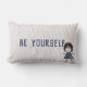 Strichfigur-Mädchen in Denim Kleid mit Zitat Lendenkissen