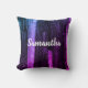 Dieses neongestreifte, moderne Kissen ist in kräftigen Rosa- und lila-Farbtönen gehalten. Neben Schwarz bilden diese Neonfarben vertikale Linien auf der Vorder- und Rückseite dieses Kissens. Dieses Kissen verleiht Ihrem Kinderzimmer, Ihrem Wohnzimmer oder jedem Zimmer eine Farbtupfer eines zeitgenössischen Stils. Personalisieren Sie schnell und einfach den Namen, der auf der Vorderseite erscheint, oder löschen Sie ihn, wenn Sie möchten.