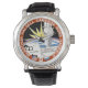 Uhr, Vintage Männeruhr mit schwarzem Lederarmband