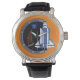 Uhr, Vintage Männeruhr mit schwarzem Lederarmband