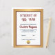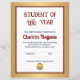 Student Of The Year Achievement Certificate Custom Award ist großartig, um Ihre Schüler zu zeigen, Ihre Wertschätzung für die harte Arbeit, die sie getan haben. Das Zertifikat kann mit Ihren Informationen über den Schüler und dessen Anerkennung personalisiert werden. Personalisiere es.