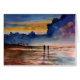 Eine Familie genießt einen Weg entlang dem Ufer nach Sonnenuntergang, während dunkle Wolken einen kommenden Sturm voraussagen. Gezeigt in der Silhouette, gehen Mama und Vater entlang das Ufer, das für Muscheln Strand-kämmt, während das drei Kinderspiel in einem nahe gelegenen Gezeitenpool und in den Ufervögeln das Ufer und den Himmel punktieren. Einige Gebäude können im Abstand gesehen werden. Dunkle Farben von Braunem, von Blauem und von Lila beherrschen die Malerei mit Touchs des Rosas, der Orange und des Goldes vom Sonnenuntergang. Die ursprüngliche Malerei von JC Prida ist Aquarell auf Papier.