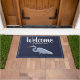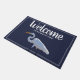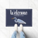 Schöne und noble südliche weiße Reihervogel- und -marineblaufußmatte mit Ihrer Wahl des personalisierten weißen Textes!