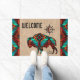 Personalisieren Sie diese einzigartige "Eine von einer Art" Südwest Buffalo Doormat! Es verfügt über ein südwestliches Buffalo auf einem Tan-Hintergrund...Umgeben von einer Südwestgrenze in Türkis, Orange und Schwarz.
