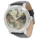 Uhr, Vintage Männeruhr mit schwarzem Lederarmband