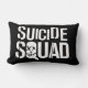 Schwarz-Weiß-Suizid-Squad-Logo mit einem Schädel im Buchstaben Q. Weiße Buchstaben auf schwarzem Hintergrund.