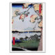 Suijin Schrein und Massaki auf Sumida Fluss, Utagawa Hiroshige. Hiroshige (1797-1858), japanischer Maler und der Printmaker, bekannt besonders für seine Landschaft druckt. Die letzte große Zahl des Ukiyo-e oder das populär, Schule von Printmaking, wandelte er tägliche Landschaften in die vertrauten, lyrischen Szenen, die ihn sogar erfolgreich als sein Zeitgenosse machten, Hokusai um.