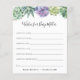 Lassen Sie Ihre Duschgäste diese wunderbaren Wünsche für Babykarten an Ihrer Babydusche ausfüllen. Mit Aquarellgrün und lila Sukkulenten. Personalisieren Sie die mit dem Mommy-to-be-Namen und dem Duschdatum.