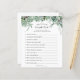 Wer kennt das beste Paar? Brautparty-Spielkarte mit einer Aquarellkaskade aus Grünpflanzen und Sukkulenten.